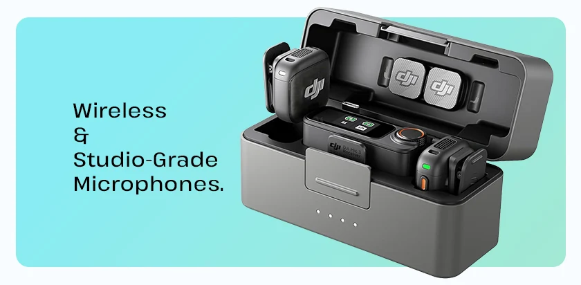 Upgrade your audio setup with wireless and studio microphones designedfor vloggers, content creators, and professionals.